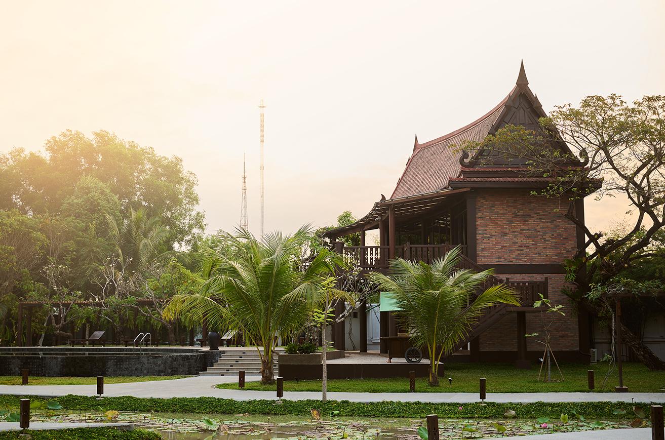 experience a luxurious stay surrounded by traditional Khmer houses and vibrant
